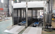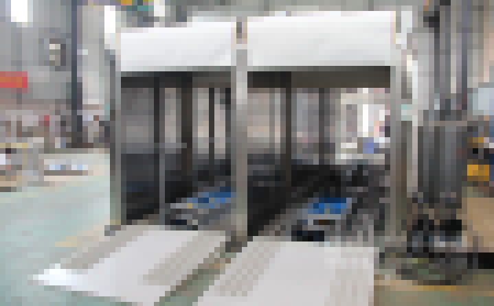 2、外形尺寸:寬4700*高2850*深13900mm,箱體內可同時平排進三臺推車,烘烤時間可獨立設置(見附圖);上料區長1500mm,設有上料斜坡,便于推車進入緩沖區;兩端緩沖區各長1700mm,各設有升降平臺,便于推車進出烘烤,爐蓋上加裝0.75KW高溫抽風風機;烘干區長7620mm,烘干區前后裝有隔熱卷閘門,加裝感應器,底部設有傳送鏈條;下料區長1500mm, 加裝斜坡 ,以便推車出料。